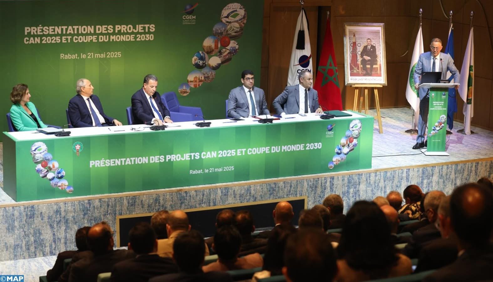 وأوضح المسؤولون، خلال لقاء نظمه الاتحاد العام لمقاولات المغرب بشراكة مع الجامعة الملكية المغربية لكرة القدم، بمركب محمد السادس لكرة القدم في المعمورة (قرب سلا)، أن الدينامية التي أطلقتها استضافة هذين الحدثين تندرج ضمن الزخم الاقتصادي والاجتماعي الذي يشهده المغرب تحت قيادة صاحب الجلالة الملك محمد السادس، مشيرين إلى أن المشاريع التي تم إطلاقها تستجيب لرؤية مستقبلية تتجاوز هذين الاستحقاقين.