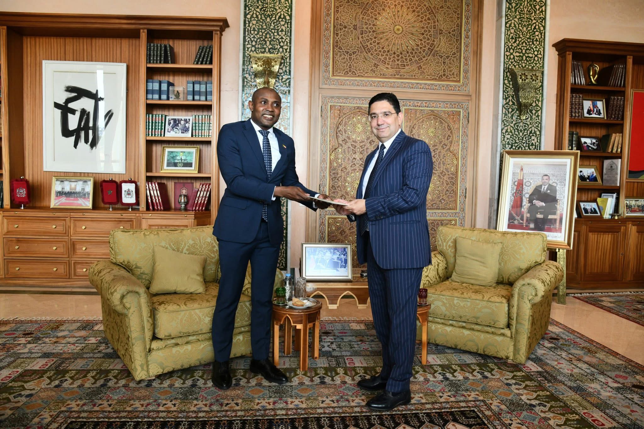 استقبل وزير الشؤون الخارجية والتعاون الإفريقي والمغاربة المقيمين بالخارج، ناصر بوريطة، اليوم الاثنين بالرباط، وزير الشؤون الخارجية والتعاون الدولي باتحاد جزر القمر، مباي محمد، حاملا رسالة إلى صاحب الجلالة الملك محمد السادس، نصره الله، من فخامة رئيس اتحاد جزر القمر، غزالي عثماني.