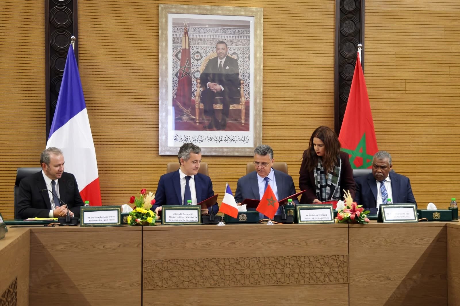وقع وزير العدل، عبد اللطيف وهبي، ونظيره بالجمهورية الفرنسية، جيرالد دارمانان، اليوم الإثنين بالرباط، خطة عمل للتعاون التقني للفترة 2026–2028.